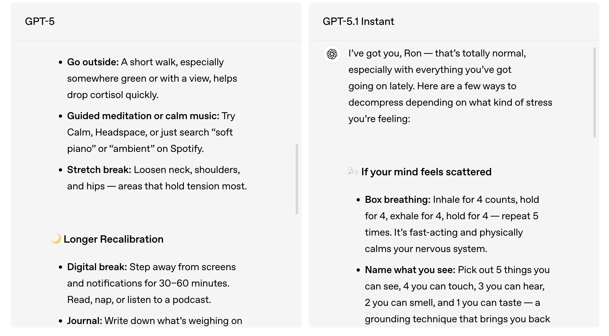 People were complaining about GPT-5 being too robotic compared to earlier models like 4o — so now 5.1 is here to fix that with a more emotionally intelligent model that combines the best of all worlds.