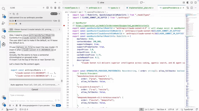 Cline is an autonomous coding agent for VS Code built around Claude. It can read your project, plan multi-step tasks, edit files, and run commands — all with human-in-the-loop approval.