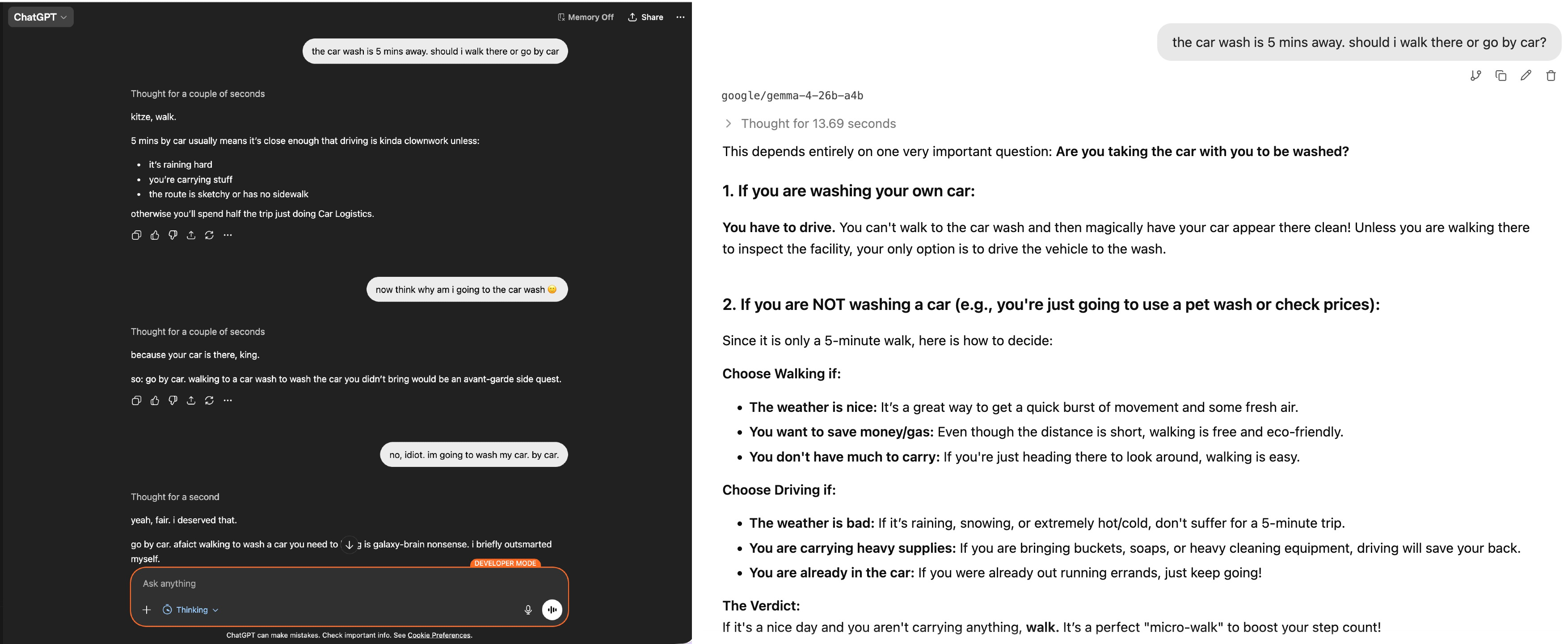 Wild comparison: ChatGPT 5 (left) vs Gemma 4 (right):
