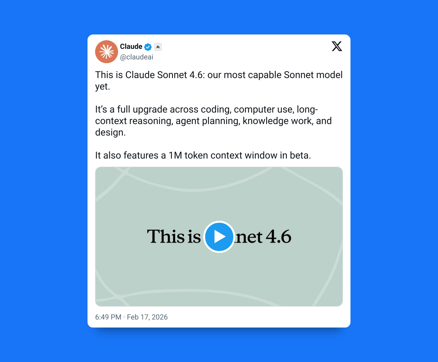 With Sonnet 4.6, Claude will handle all your real-world, production AI workloads — especially coding and tool use — without the higher cost of Opus.