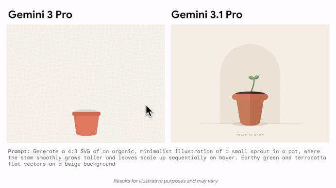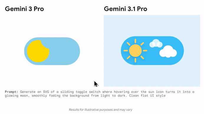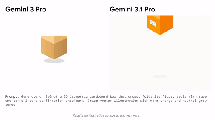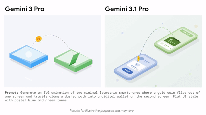 Gemini 3.1 Pro can generate native SVG animations directly from text prompts.
