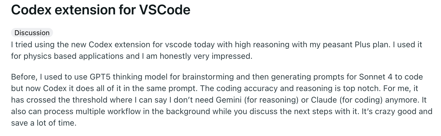 So you see, GPT-5 is going to be highly optimized in a first-party extension like Codex.