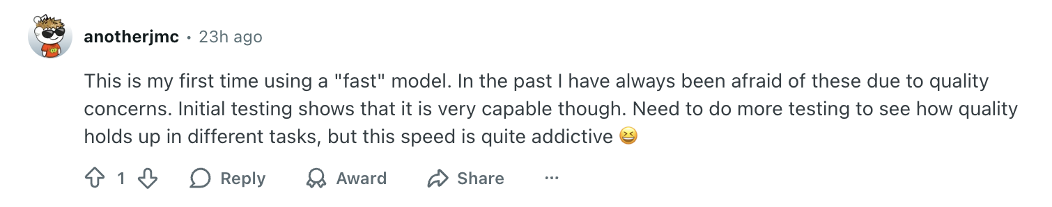 It’s even faster than Claude Haiku 4.5 — the latest Claude model that was specially released for quick coding.