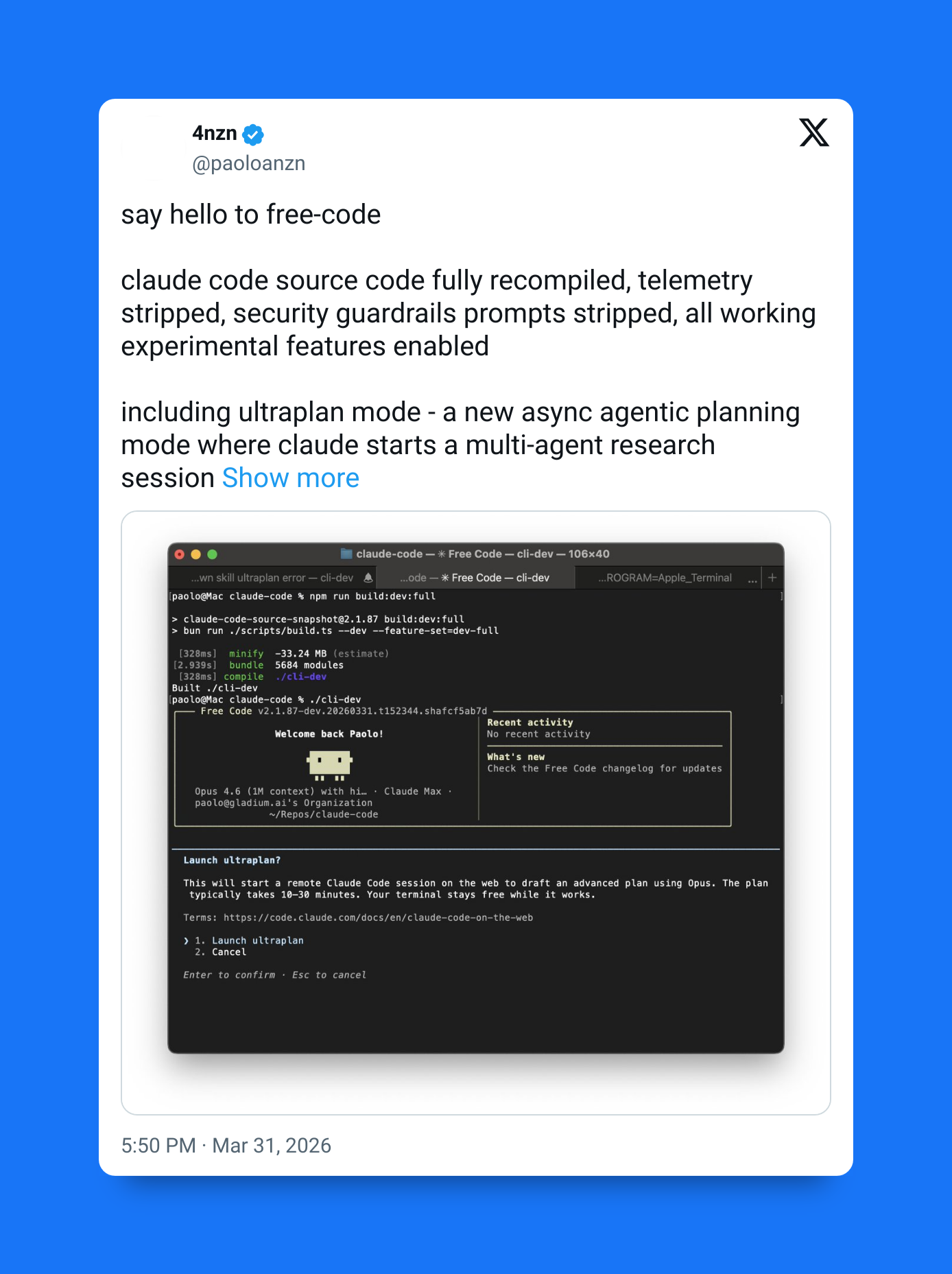 Developers mirrored the repository before takedowns began. The leak revealed: